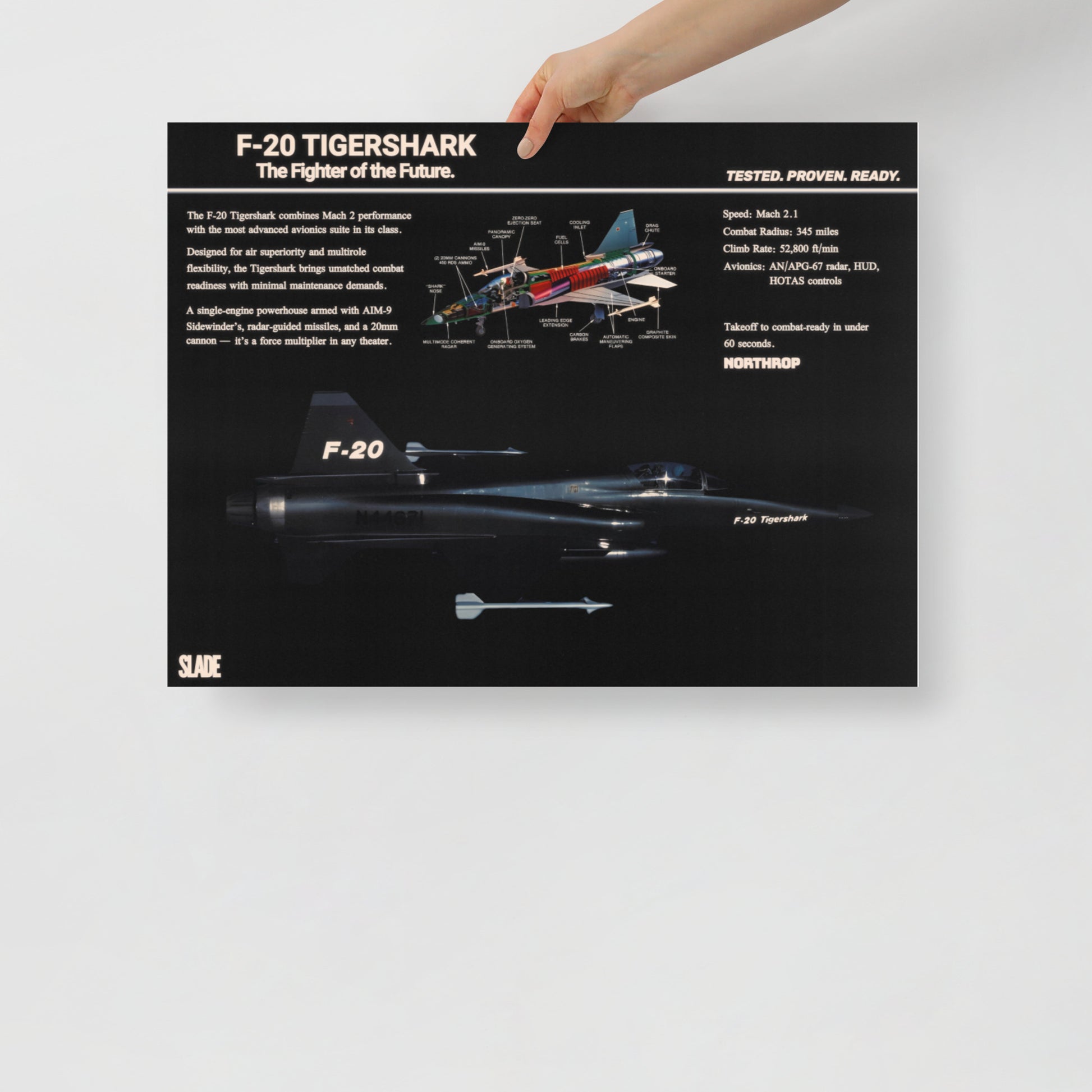 The F-20, designed by Northrop, featured the latest design of a lightweight fighter. Aptly named the Tigershark, the highly-responsive aircraft promised a future of ingenuity and reliability.
